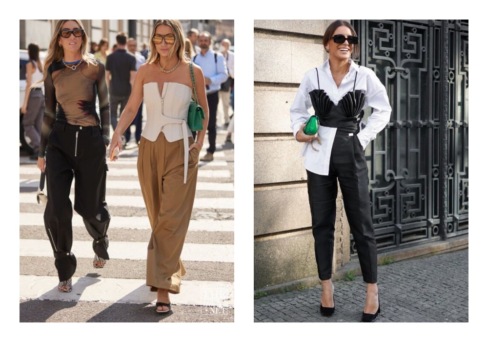 В 2022 корсеты стали настоящим мастхевом благодаря сериалу "Бриджетоны" с его викторианской эстетикой. Только зумеры решили не ущемлять себя в комфорте, а сделали ставки на корсетные топы, в том числе бюстье, модели в стиле доминатрикс из кожи, которые носили и до сих пор носят поверх рубашек, футболок и лонгсливов. Подоспела и коллекция от Versace, где были представлены корсеты-топы.